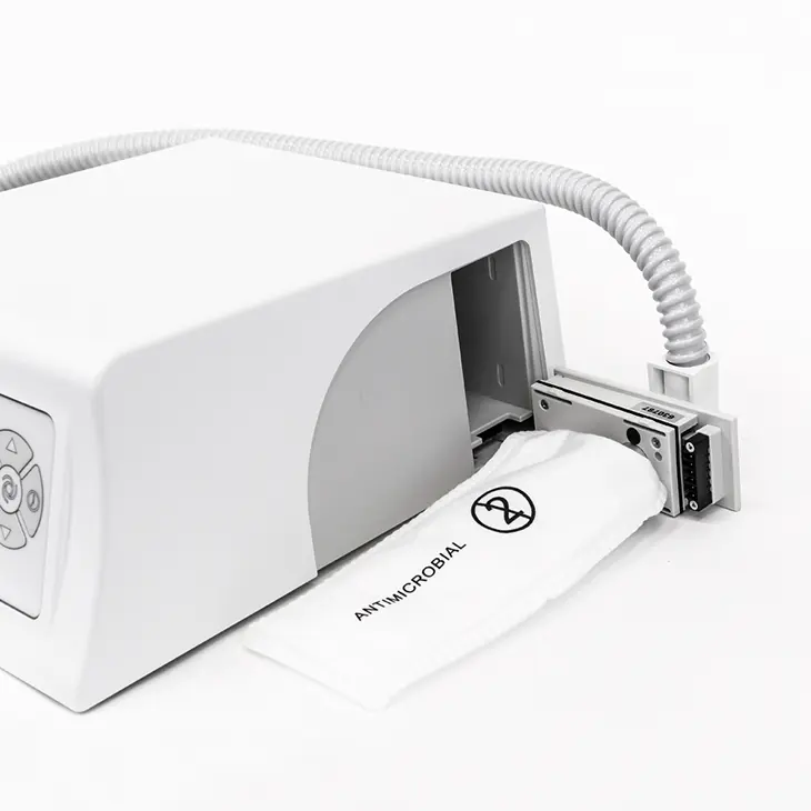 Управление аппаратом для педикюра с пылесосом осуществляется с блока питания. На удобном дисплее отображается информация о движении мотора, мощности, скорости и времени. Эргономичная ручка обеспечивает комфортную работу в течение всего рабочего дня. Скорость вращения меняется плавно и достигает 30000 оборотов в минуту.