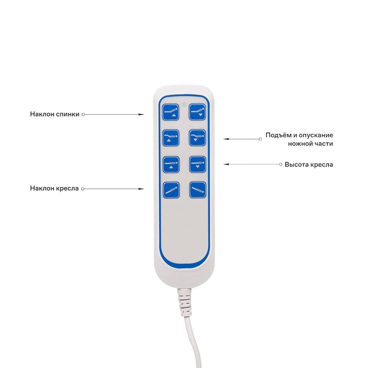 Косметологическое кресло МД-145 сочетает в себе стиль, европейский дизайн, удобство и надёжность, это кресло для проведения полного комплекса косметологических и массажных процедур. В таком кресле каждый клиент сможет насладиться процедурой в комфортных условиях. Регулировка спинки, высоты, подъёма ног и угла наклона кресла осуществляется мощным электроприводом с 4 моторами с помощью улучшенной версии пульта управления с 8 кнопками, что позволяет быстро и с комфортом для клиента менять положение мягких элементов. Имеется функция CPR – мгновенное приведение всех секций в исходное положение.