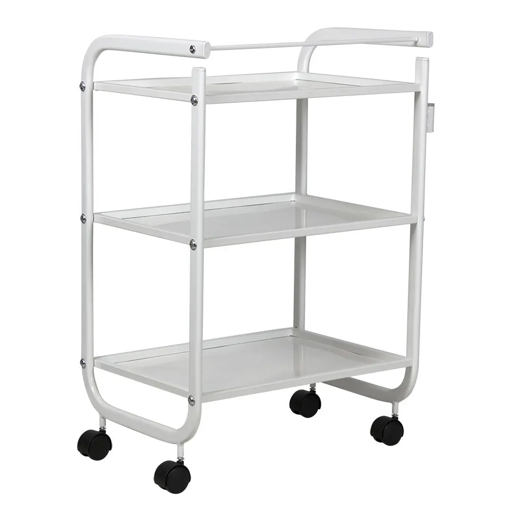 Купить косметологическую тележку МД-102А можно для косметологического или массажного кабинета, СПА-салона. Она оснащена тремя металлическими полками с удобными бортиками, препятствующими падению расположенных там инструментов, расходных материалов и различных приборов. Все полки имеют одинаковые размеры – 470х340 мм. При выборе косметологической тележки стоит учитывать расстояние между полками. В данной модели оно составляет 260 мм.