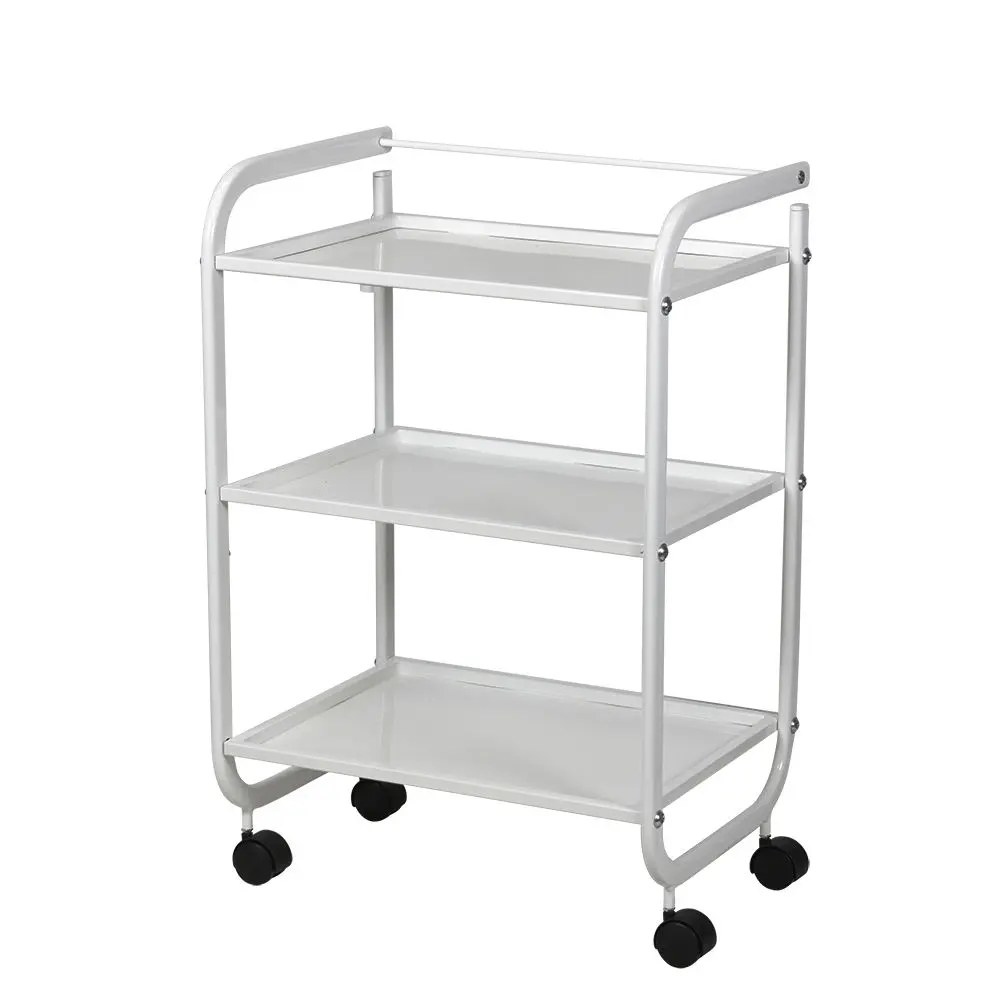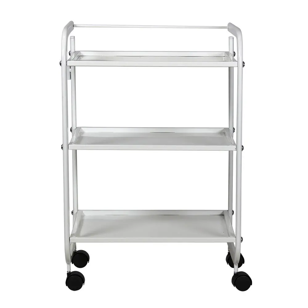 Комплектация: металлический каркас, три полки с бортиками, колеса.