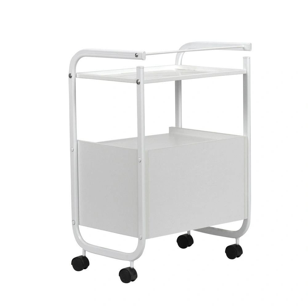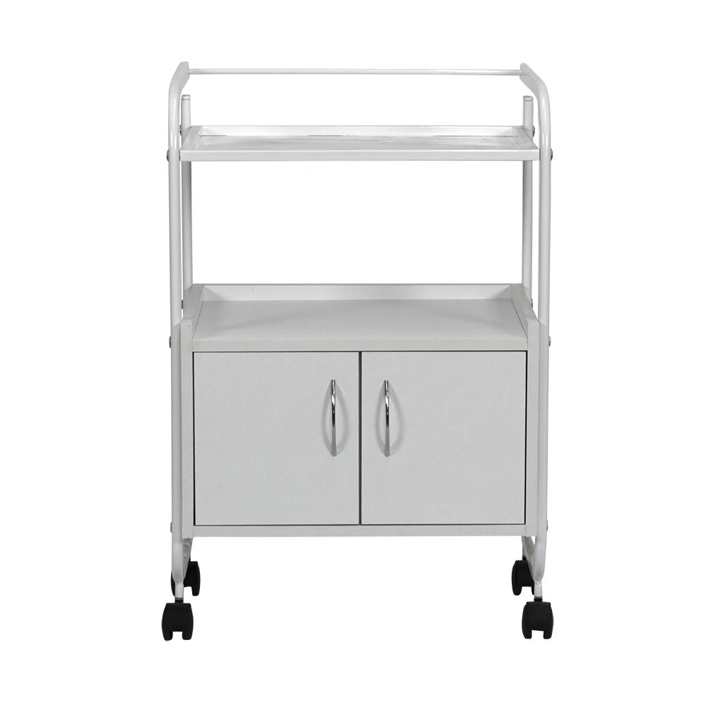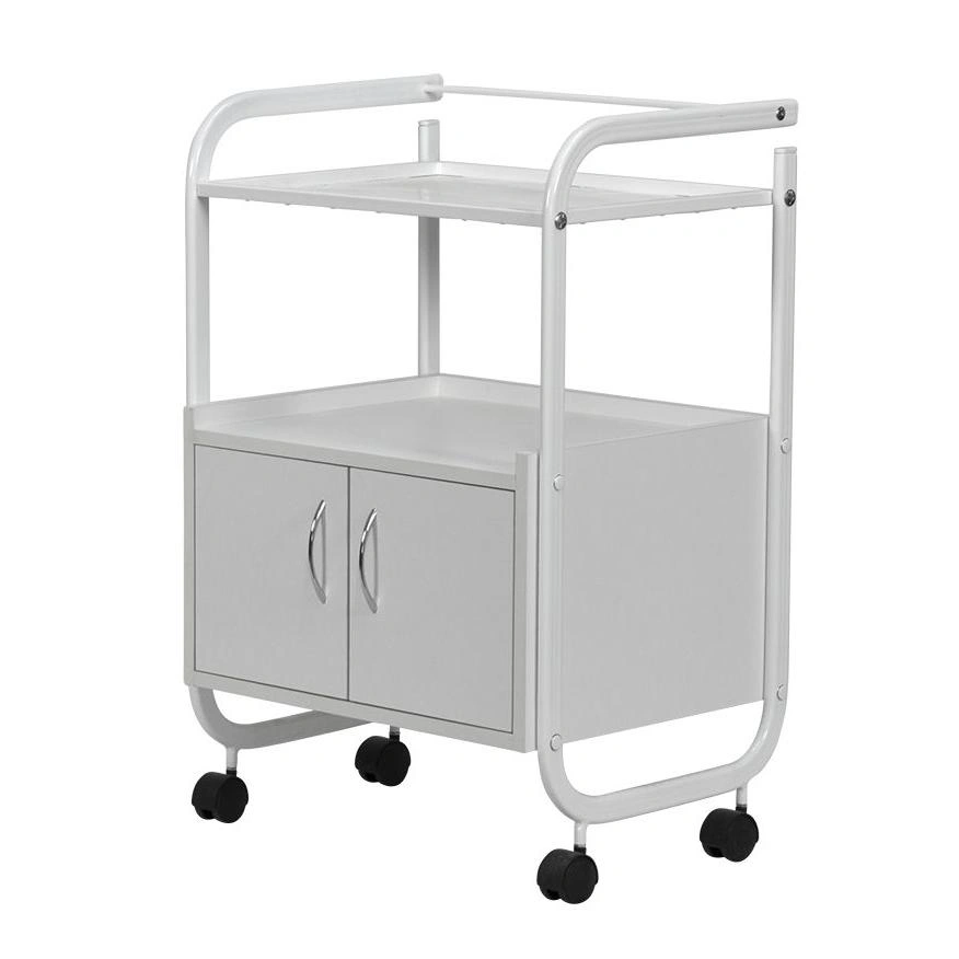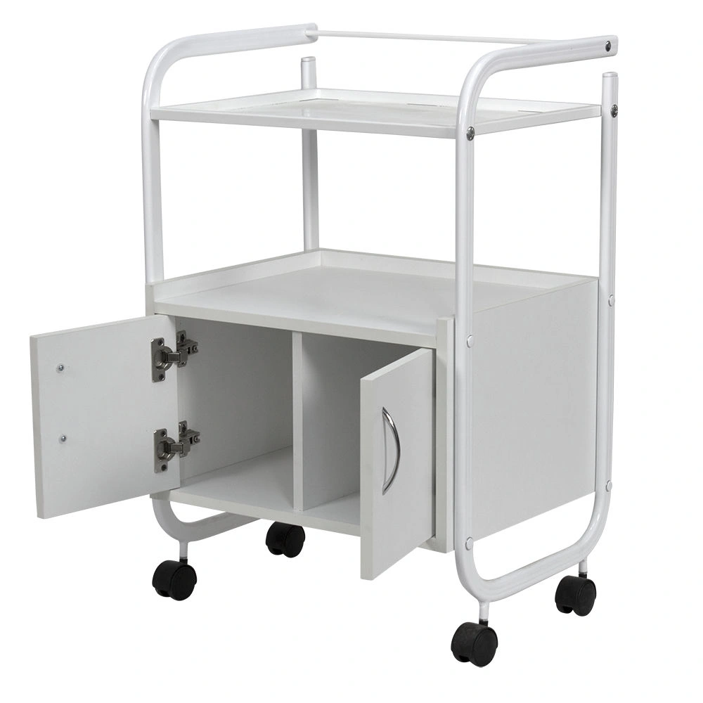 Мобильная косметологическая тележка МД-104 – выгодное и необходимое приобретение для рабочего кабинета. Это современная модель, для производства которой используются качественные, долговечные материалы. Каркас и все крепежные элементы металлические, защищены от коррозии специальным влагоотталкивающим покрытием. Встроенная тумба из ЛДСП белого цвета, внутри разделена вертикальной перегородкой на две ниши, закрывающиеся дверками с хромированными ручками. Верхняя полка из листа металла, с бортиками для удобного размещения инструментов.