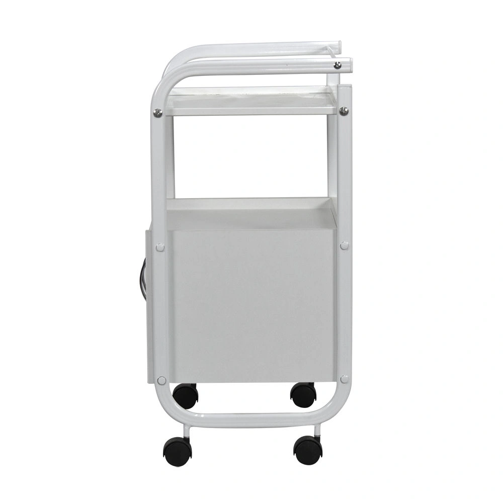 Купить косметологическую тележку МД-104 можно для установки в кабинете любой площади, так как она имеет компактные размеры и продуманную конструкцию, без лишних элементов и острых углов. Модель достаточно вместительна: хранить инструменты и прочие принадлежности можно на полочке, внутри тумбы, а также на тумбе. Пространства между тумбой и полочкой вполне достаточно для размещения высоких бутылок и баночек с косметикой, расходными средствами, а также для компактных косметологических аппаратов.