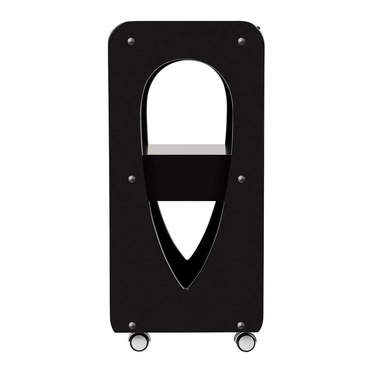 Комплектация: 1 выдвижной ящик с декорированной накладкой и 3 открытые полки; верхняя полка с бортиками; материал – дерево; 2 цвета; 4 опорных колеса, двойные, съемные.
