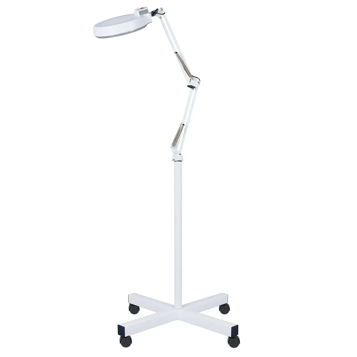 Прочный металлический штатив имеет защитное покрытие белого цвета для предотвращения образования коррозии. Металлическое пятилучье с пластиком имеет удобный диаметр и обеспечивает устойчивость лампы в любом положении. Наличие мобильной напольной стойки позволит использовать лампу-лупу только по необходимости. В комплект к универсальной стойке для косметологической лампы магазин МЭДИСОН предлагает купить качественную лампу-лупу диодную на струбцине или кольцевую, с люминесцентной подсветкой по выгодной цене от производителя.