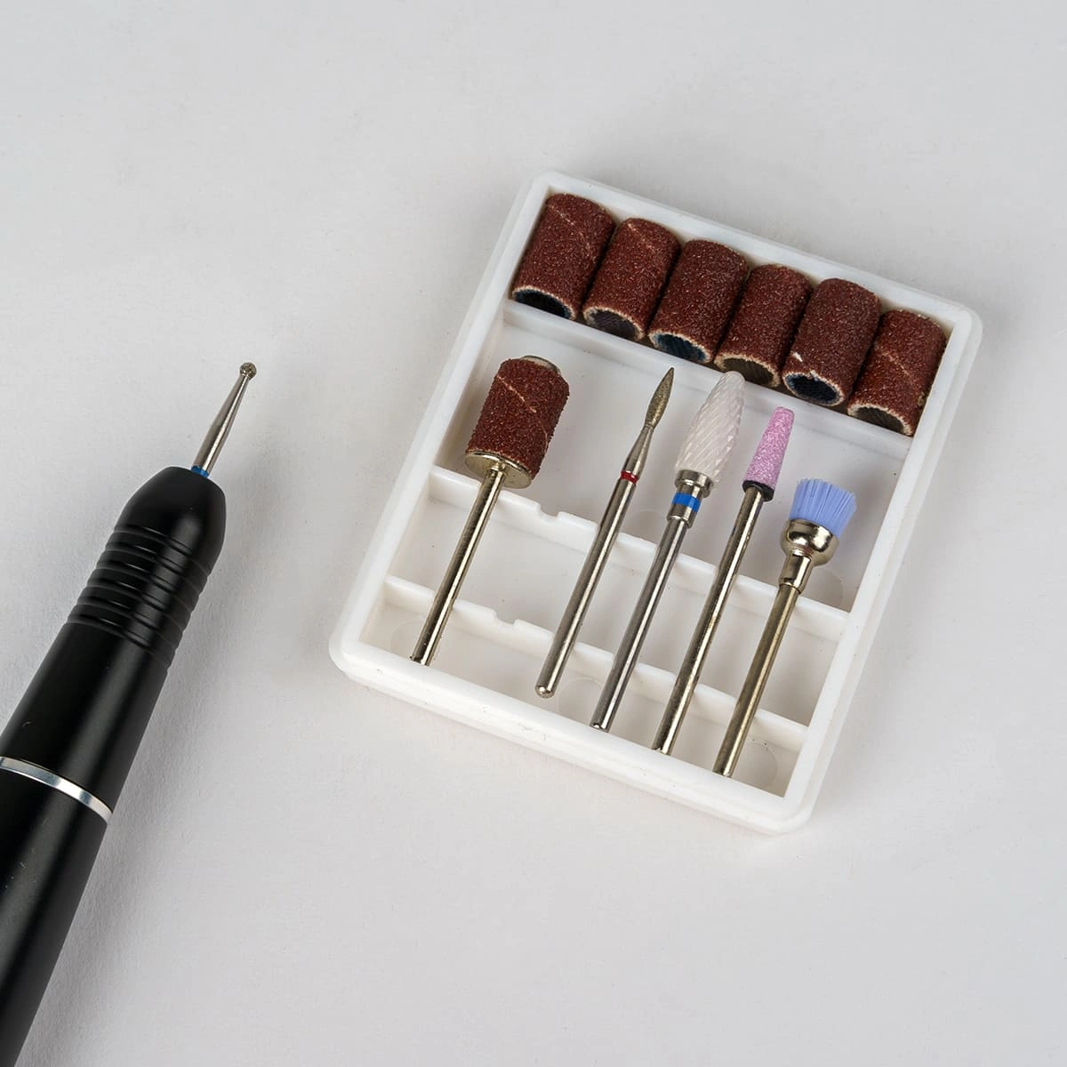 Комплектация: чехол, ручка с микромотором, фрезы.