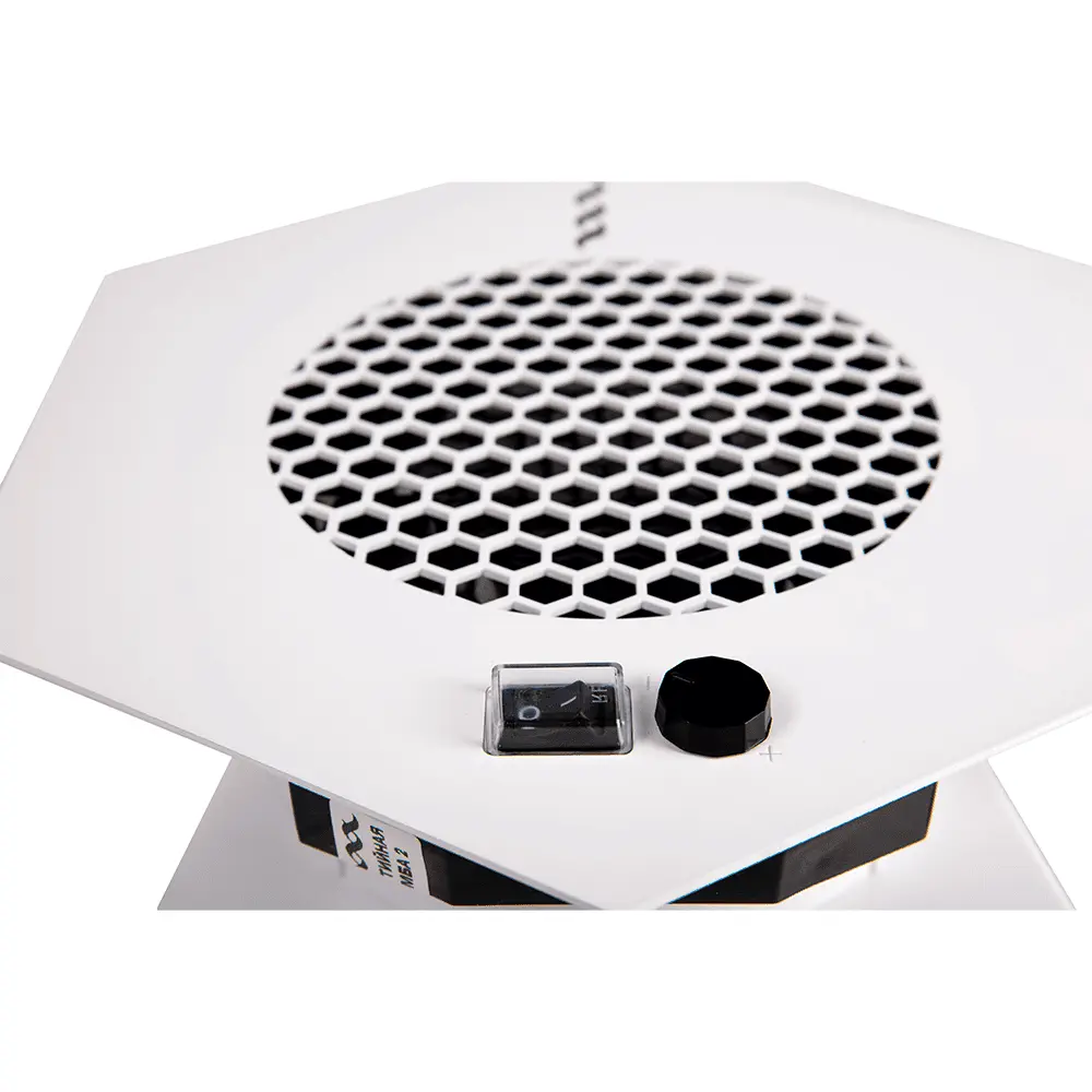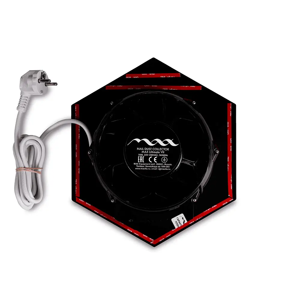 Врезная вытяжка Ultimate 7 – это мощный пылесборник, предназначенный для мастеров маникюра, принимающих клиентов в салонах красоты или выезжающих на дом. Изделие обладает продуманным дизайном, выглядит стильно, предлагается в двух цветовых решениях – черном и белом, поэтому можно легко подобрать вариант под интерьер кабинета. В корпусе установлен мощный вентилятор с 9 лопастями, которые прокачивают больше воздуха, чем аналогичные устройства других производителей. Кроме того, лопасти установлены близко к краю крыльчатки, поэтому вентилятор всасывает большее количество ногтевой пыли.