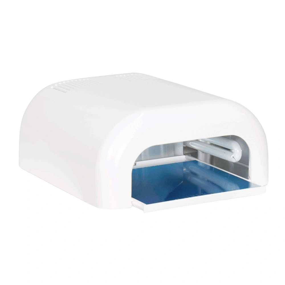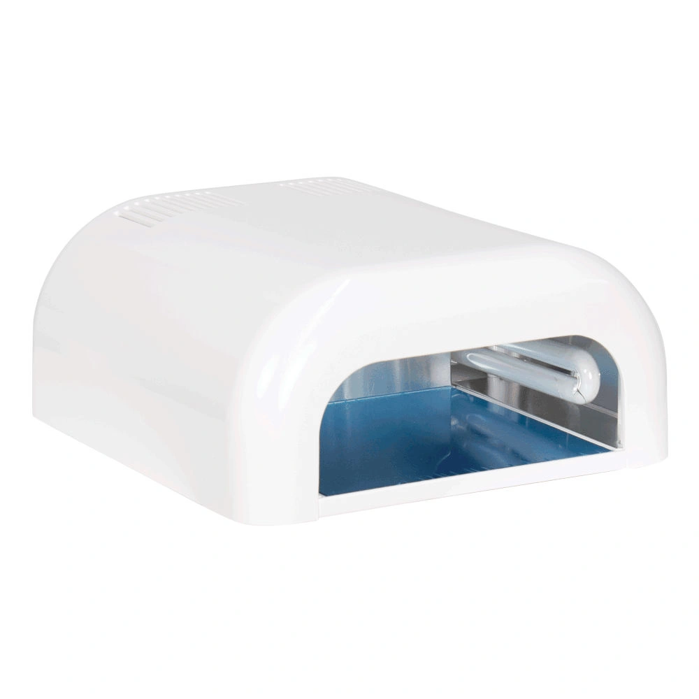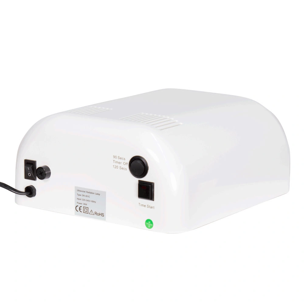 Профессиональная УФ лампа МД-301С применяется для полимеризации гель-лака, а также ультрафиолетовой сушки геля и акрила во время наращивания ногтей. В приборе установлено четыре стандартные ультрафиолетовые лампочки мощностью по 9 Ватт. Для равномерного освещения две из них установлены в верхней части корпуса и две по бокам. Корпус лампы выполнен из прочного белого пластика. Внутреннее пространство имеет светоотражающее зеркальное покрытие. Благодаря продуманной конструкции устройства гель быстро высыхает и не растекается.
