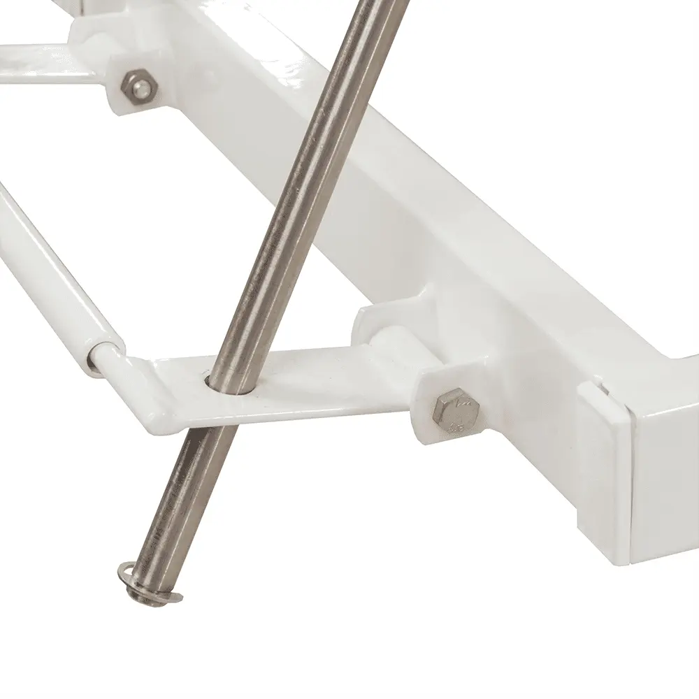 Продуманная конструкция без лишних деталей способна выдерживать регулярные рабочие нагрузки. В зависимости от процедуры, мастер может с легкостью поднять ножной элемент или спинку. Регулировка осуществляется механически.