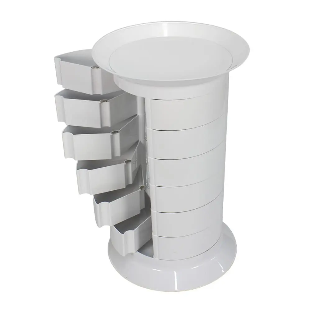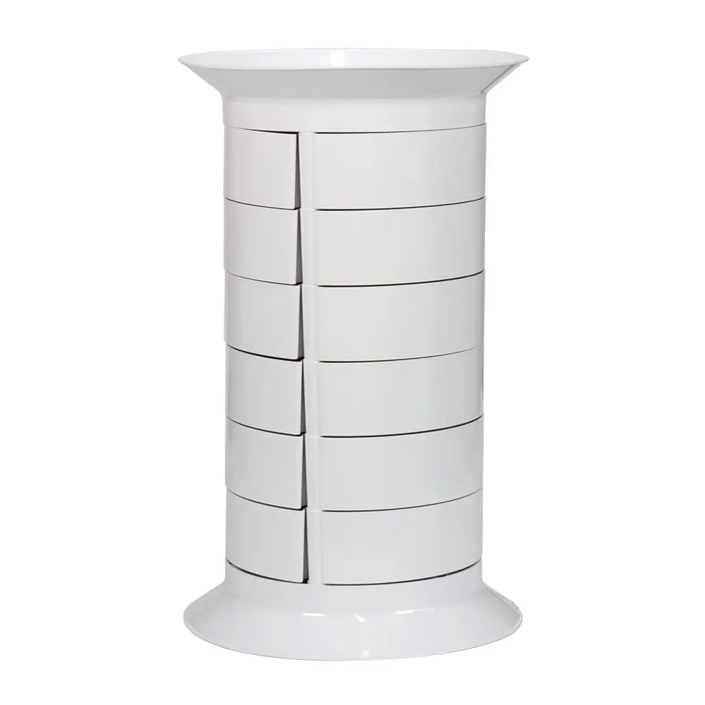 Тумба универсальная GiroCo Catalina white – стильное оборудование для современного салона красоты. Оборудование очень вместительно за счет множества выдвижных ящичков. Для перемещения тумбы в конструкции предусмотрены маневренные колеса. Белый цвет мебели для холла подойдет для любого интерьера.