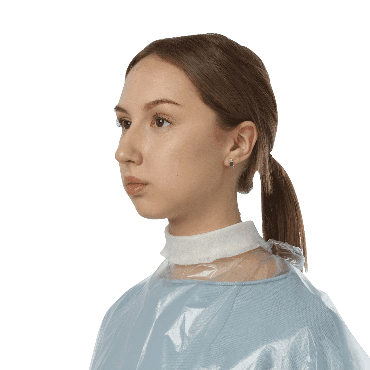 Пеньюар стандарт из полиэтилена предназначен для защиты одежды и кожи клиента от попадания волос и различных красящих и химических веществ. Полиэтилен является прочным синтетическим веществом, благодаря этому, изделия из него обладают влагоустойчивостью, эластичностью и высокой стойкостью к деформациям. При этом полиэтиленовый пеньюар тонкий и легкий.