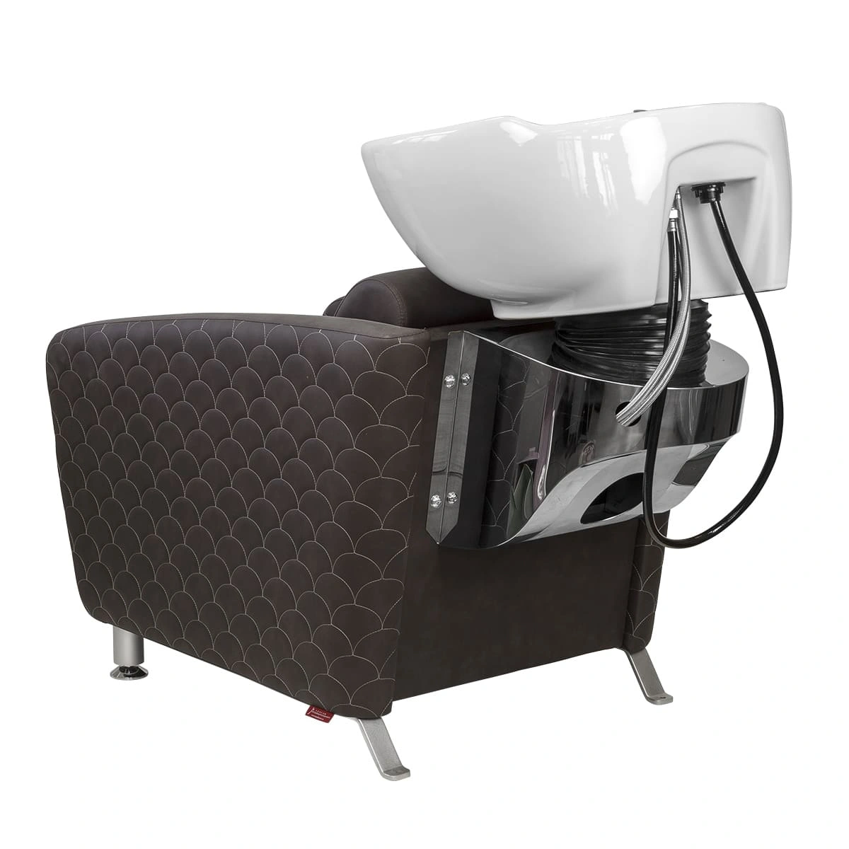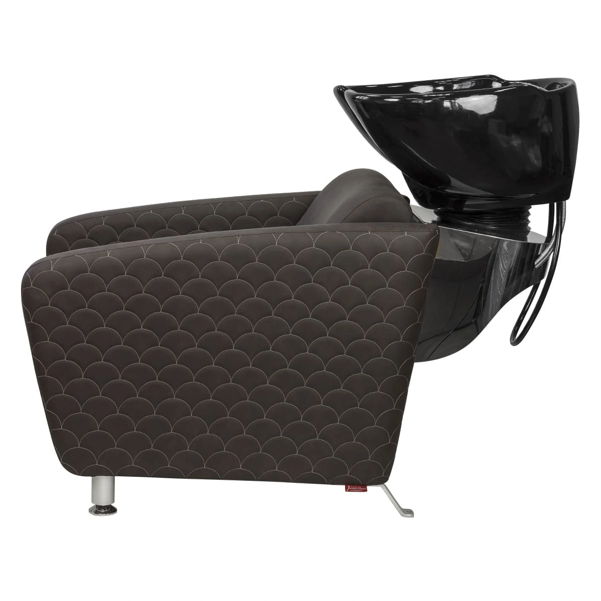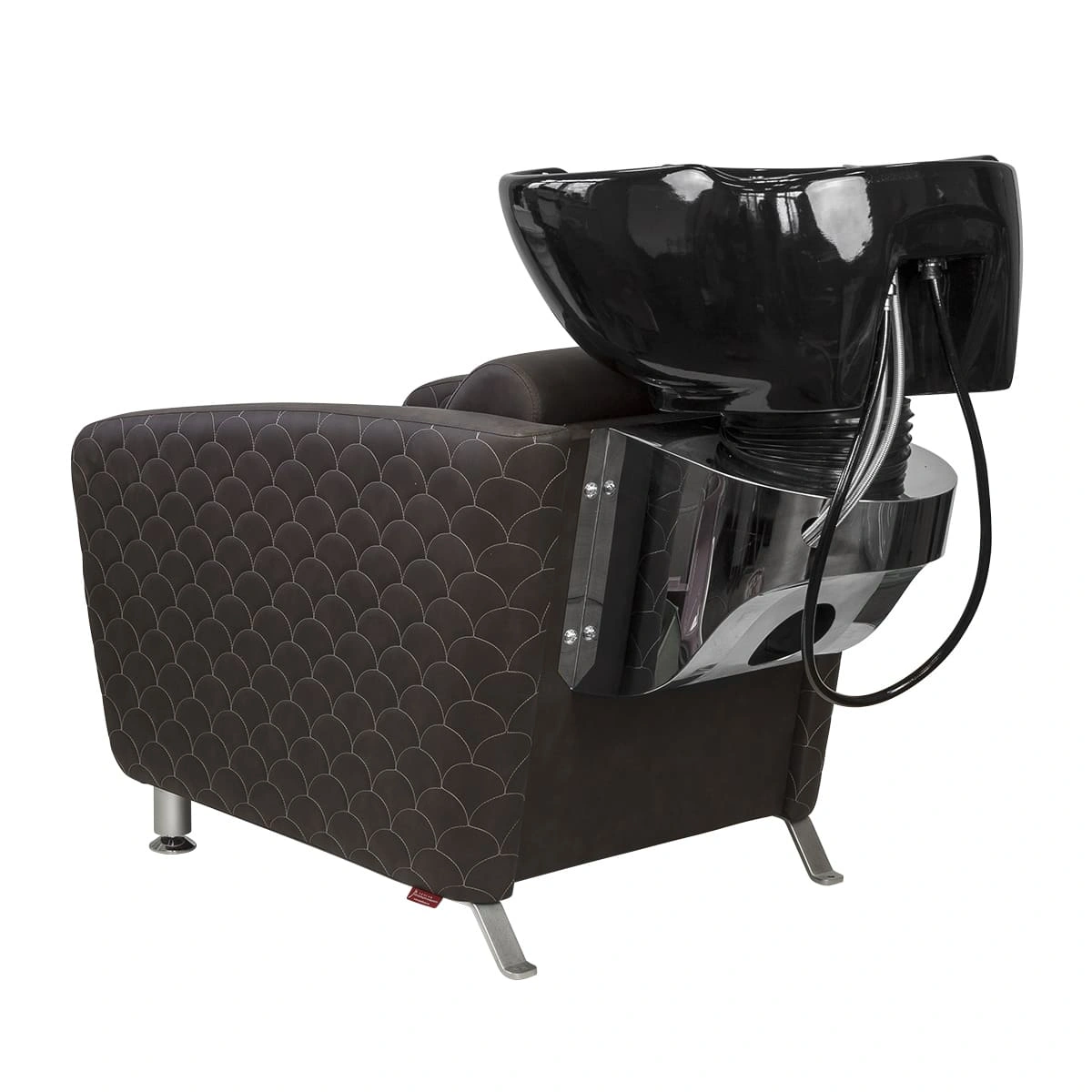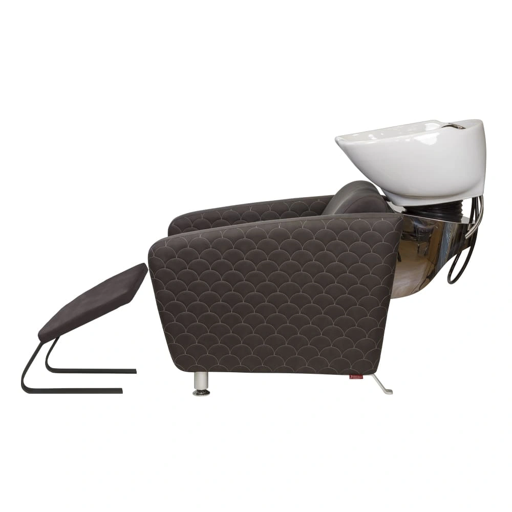 Каркас мойки изготовлен из прочного металла с влагозащитным покрытием черного цвета. Он прикреплен к спинке кресла, из-за чего конструкция не требует крепления к полу. Обивка кресла выполнена из качественной экокожи, устойчивой к воздействию воды и дезинфицирующих средств. Парикмахерская мойка МД-123 без регулировки ножной части от магазина МЭДИСОН поставляется в двух коробках. В комплект к мойке рекомендуем приобрести парикмахерское кресло МД-165 с аналогичным дизайном.