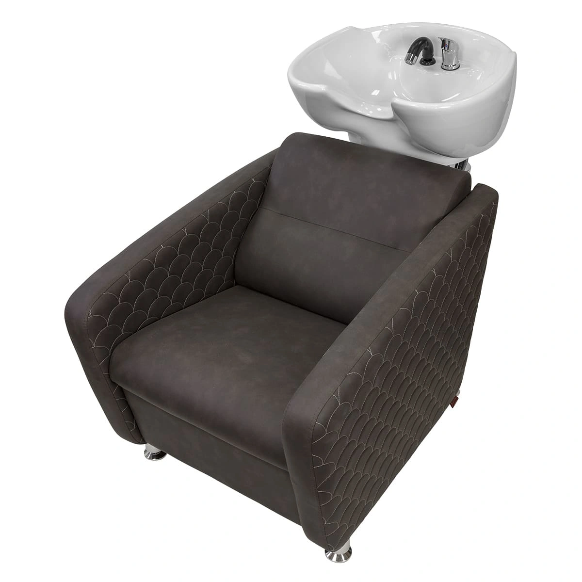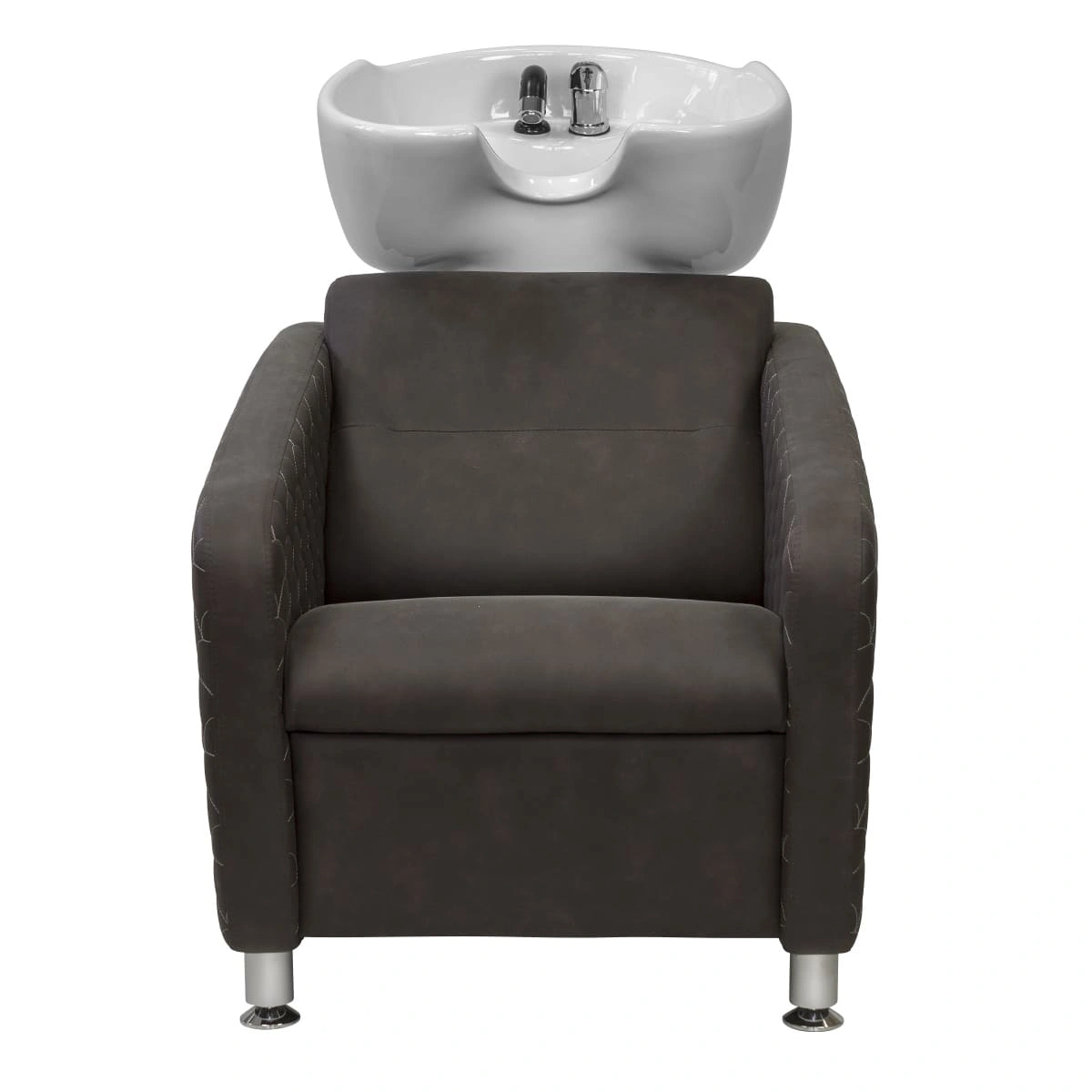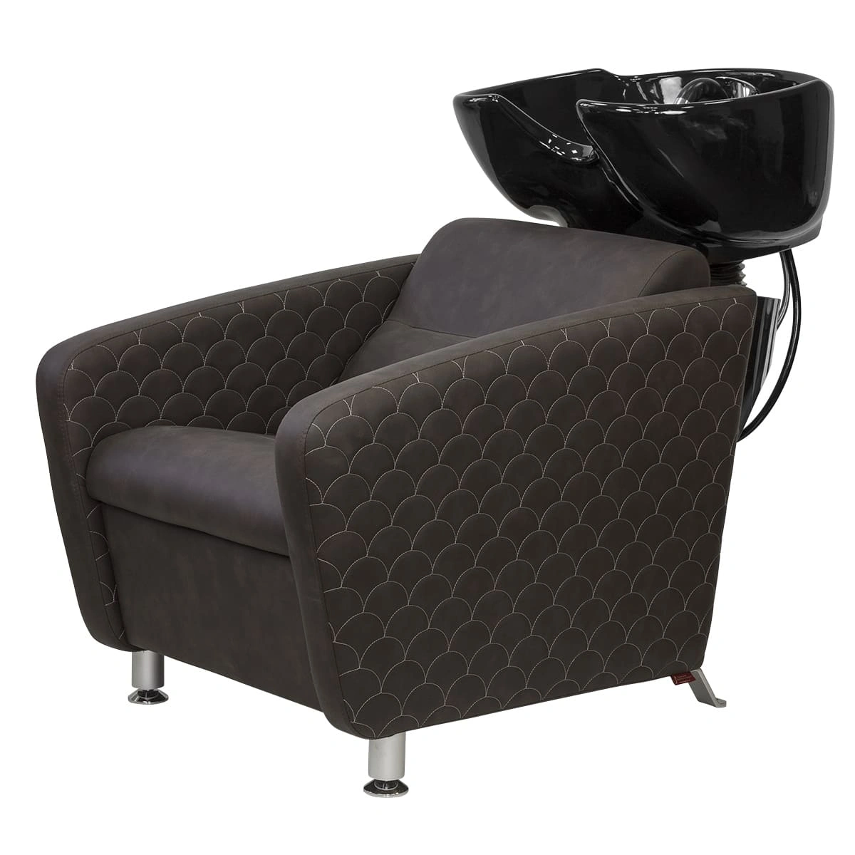 Каркас мойки изготовлен из прочного металла с влагозащитным покрытием черного цвета. Он прикреплен к спинке кресла, из-за чего конструкция не требует крепления к полу. Обивка кресла выполнена из качественной экокожи, устойчивой к воздействию воды и дезинфицирующих средств. Парикмахерская мойка МД-123 без регулировки ножной части от магазина МЭДИСОН поставляется в двух коробках. В комплект к мойке рекомендуем приобрести парикмахерское кресло МД-165 с аналогичным дизайном.