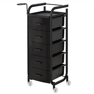 Парикмахеру оптимально подойдет передвижная тележка на колесиках с открытыми полками и съемными сетчатыми лотками. Отличным дополнением будут отверстия для брашингов и установки фена.