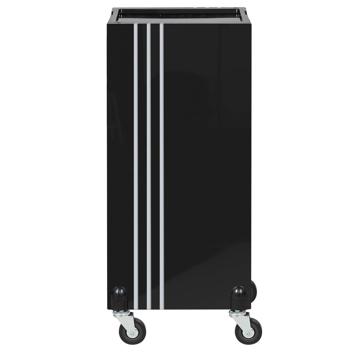 У парикмахерской тележки стильный прямоугольный дизайн с острыми углами. Верхняя крышка с фенодержателем и углублением для инструментов и баночек красоты, 5 вместительных выдвижных ящиков, это позволит мастеру организовать рабочее пространство и повысить эффективность работы.