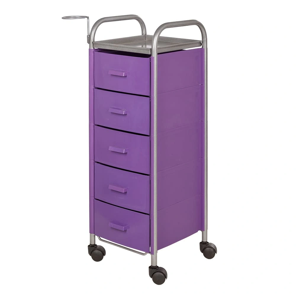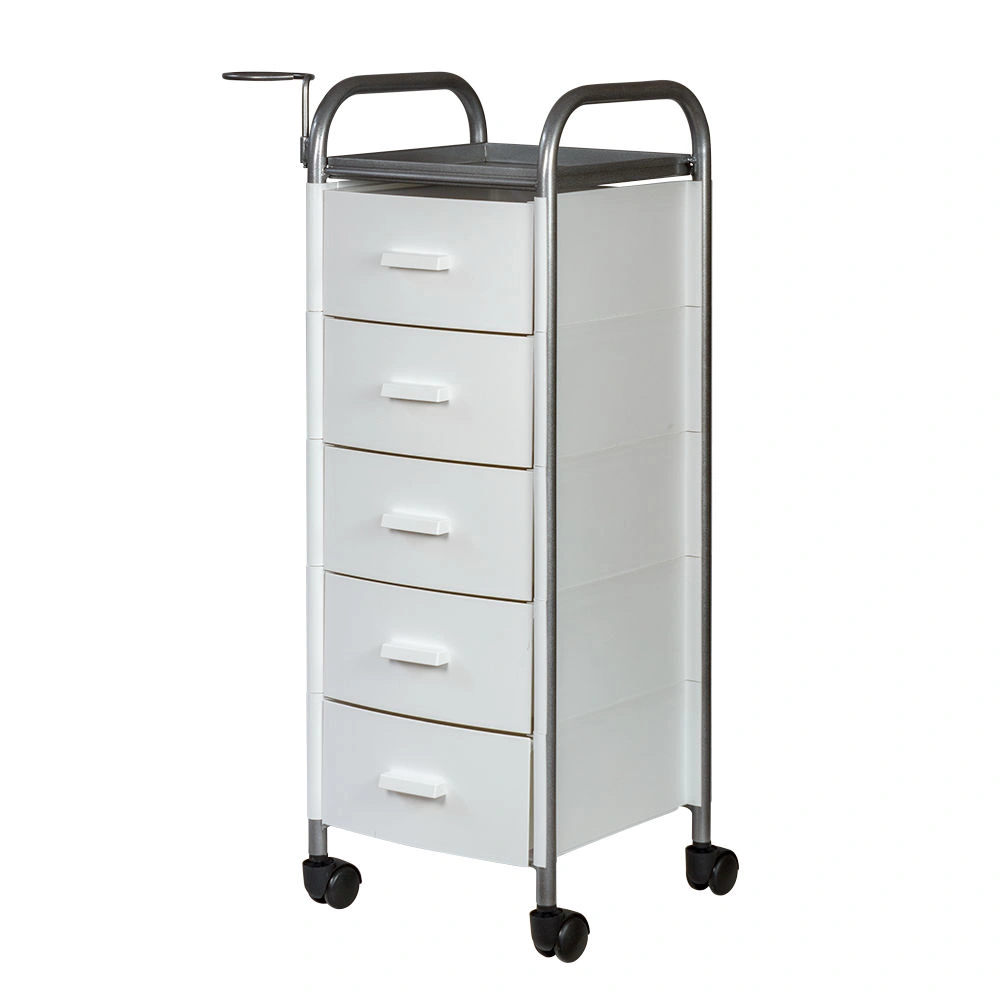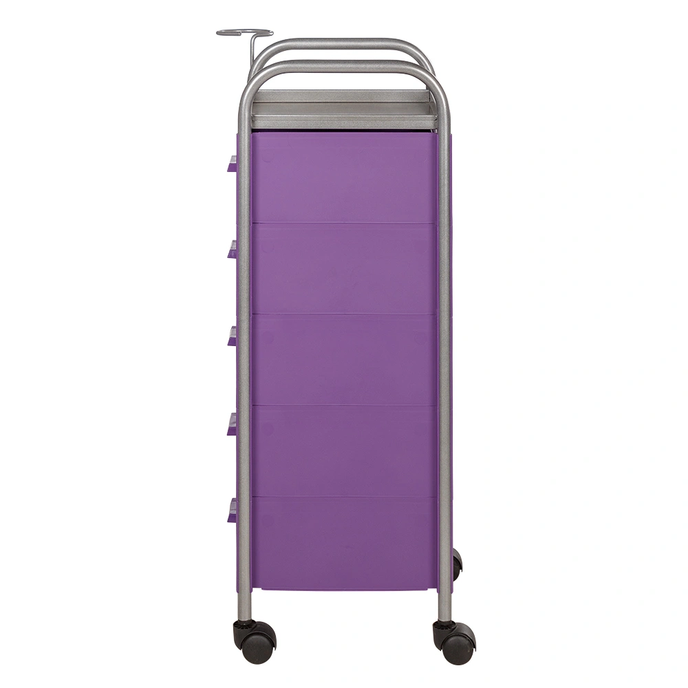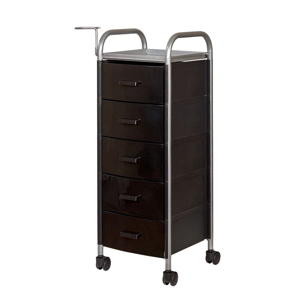 Для принадлежностей в парикмахерской тележке есть пять выдвижных ящиков. Верхняя полка позволит мастеру держать под рукой инструменты, необходимые во время работы с клиентом. На боковине установлен практичный фенодержатель. Вращающиеся колесики обеспечивают плавное и практически бесшумное перемещение оборудования в пределах рабочей зоны.