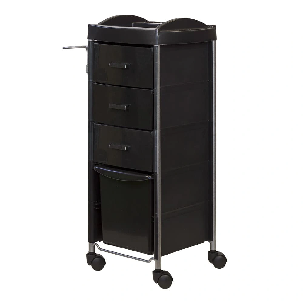 Верхняя полка, ящики и боковины изготовлены из экологически чистого пластика. Каркас парикмахерской тележки из стали не поддается коррозии, устойчив к влаге и химическим веществам, что значительно увеличивает эксплуатационный срок. Компания МЭДИСОН предлагает практичную тележку в черном и белом цвете.