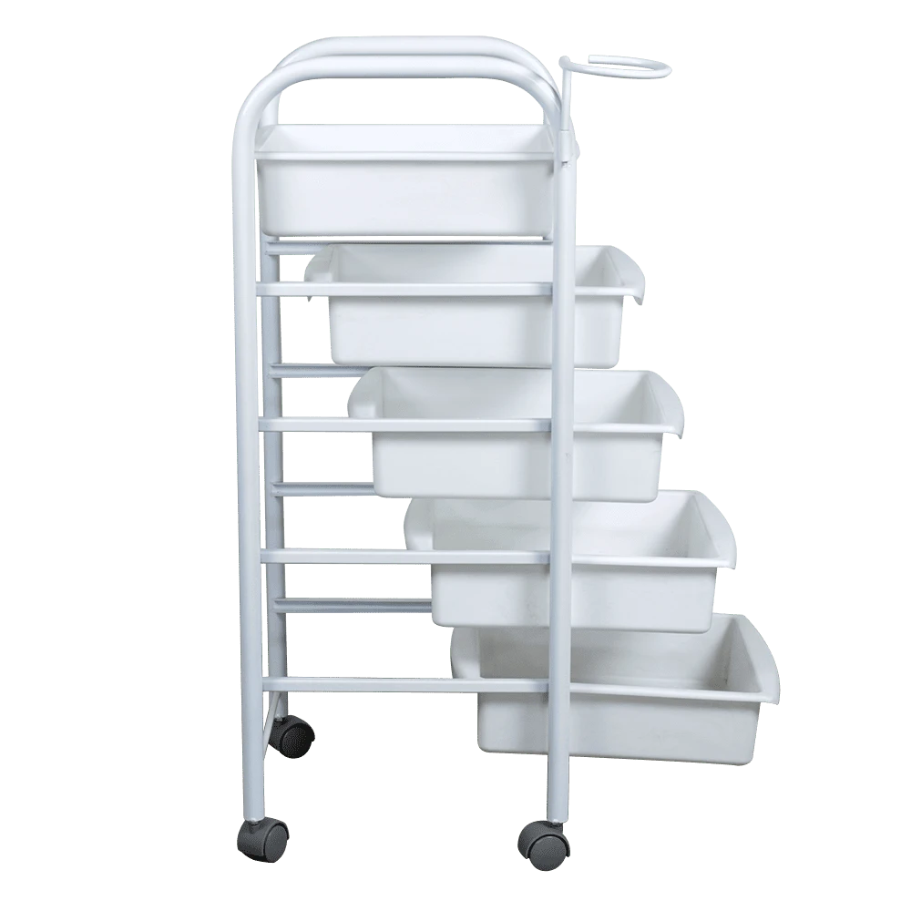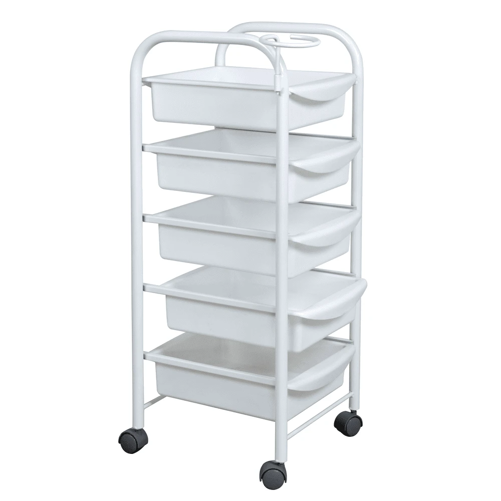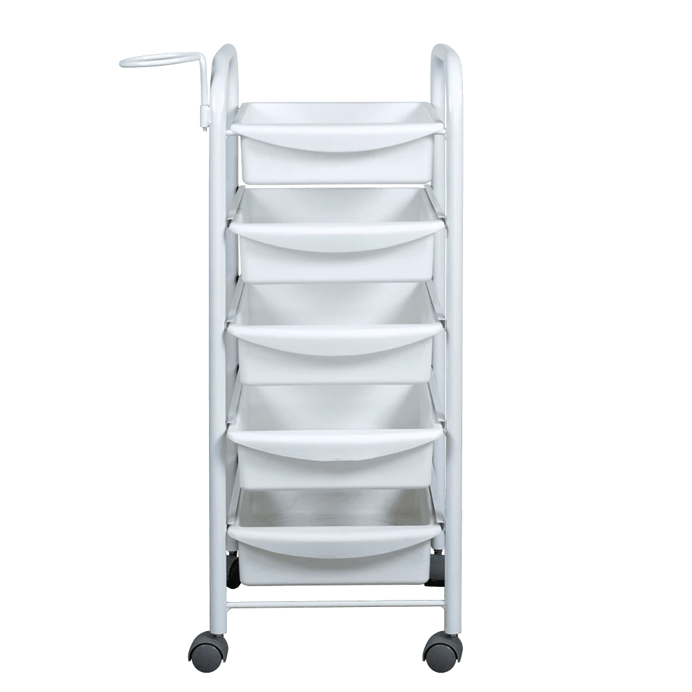 Тележка парикмахерская М-01 (белый цвет) – это профессиональное оборудование по доступной цене. С ее помощью можно сделать рабочее место мастера парикмахера более практичным, что в свою очередь положительно влияет на эффективность его работы. Такая тележка отлично подходит для хранения рабочих инструментов, приборов и расходных материалов. В комплектацию входит пять вместительных выдвижных ящиков из прочного пластика белого цвета. Этот материал легко чистится и не требует особого ухода.