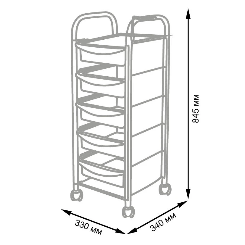 Комплектация: каркас, пять ящиков, держатель для фена, четыре колеса.