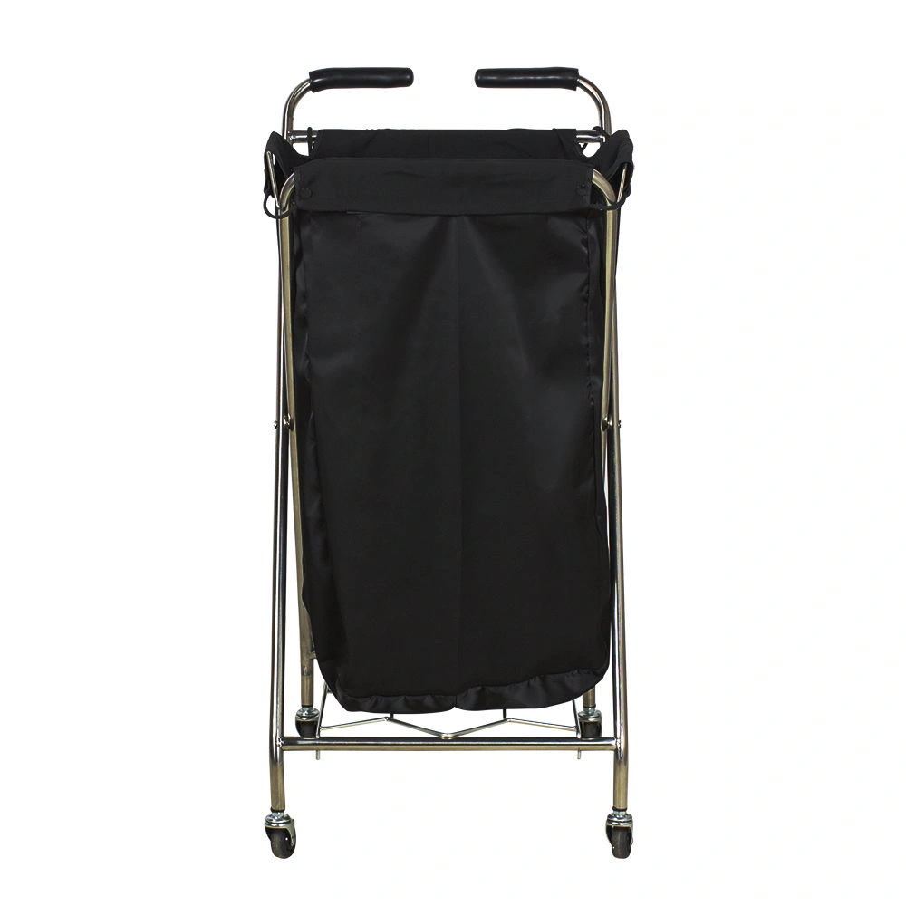 Тележка парикмахерская Т-202 предназначена для временного хранения использованных полотенец и других текстильных материалов. Это незаменимый помощник в любой парикмахерской, так как полотенца используются во время большинства процедур. Каркас данного оборудования для парикмахерской изготовлен из хромированного металла, устойчивого к воздействию влаги и дезинфицирующих средств. Для складывания полотенец на каркас крепится съемный мешок из прочного материала – полиэстера. Он легко чистится и не требует специального ухода, благодаря чему может прослужить несколько лет. В нашем интернет-магазине Вы можете купить тележку парикмахерскую Т-202 с мешком универсального черного цвета.