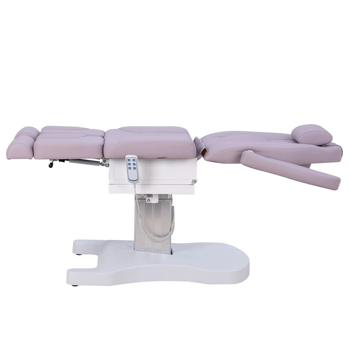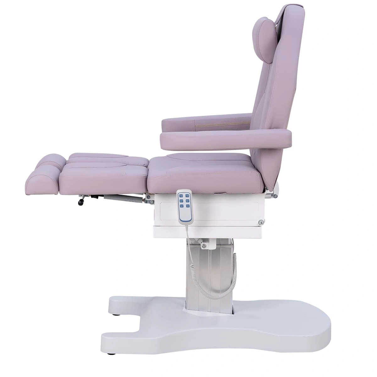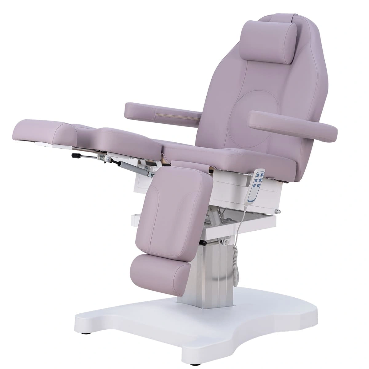 Функционал кресла Оникс-04 на колонне, 3 мотора дополняет электропривод с тремя моторами для регулирования высоты, положения спинки и наклона сиденья. Высота ножек регулируется пневматикой. Все механические детали аккуратно спрятаны в стильной серебристой колонне. Мягкие элементы под стопы легким движением выдвигаются на необходимую длину. Наличие различных регулировок позволяет мастеру подобрать наиболее удобное положение кресла.