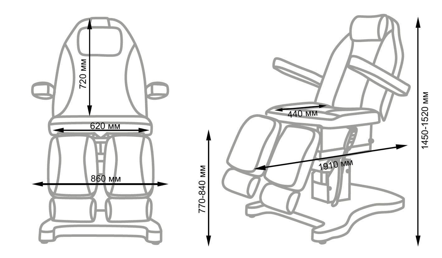 • Размеры (ВхШхД): 770 – 840х860х1910 мм