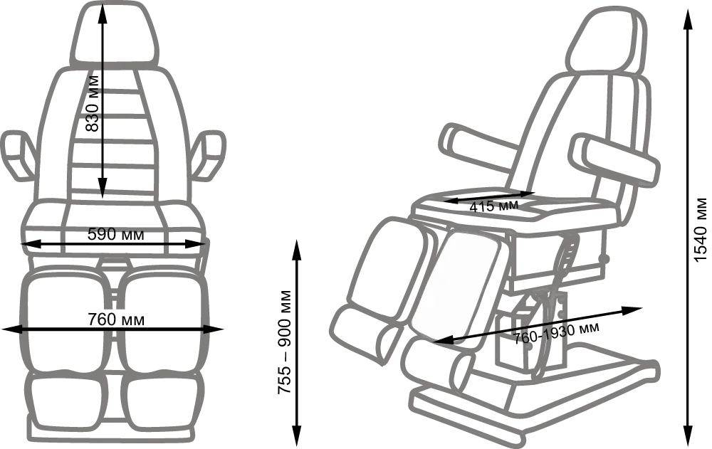 Педикюрное кресло Сириус-10 (Элегия-3), 3 мотора, магазин МЭДИСОН предлагает с такими размерами: