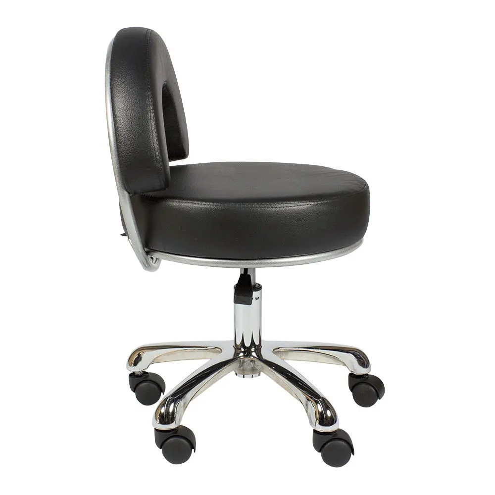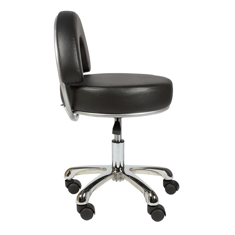Компактная спинка позволит уменьшить напряжение мышц спины во время выполнения процедур, и при этом не будет ограничивать свободу движений, что особенно важно в условиях минимальной площади рабочей зоны. Она крепится к металлическому каркасу, который жестко прикреплен к основанию под сиденьем. Все металлические элементы каркаса защищены от воздействия влаги и дезинфицирующих средств специальным влагостойким покрытием серебристого цвета. Стул мастера МД-2118 с низкой посадкой от магазина МЭДИСОН подойдет косметологам, специалистам педикюрных кабинетов, мастерам по депиляции.