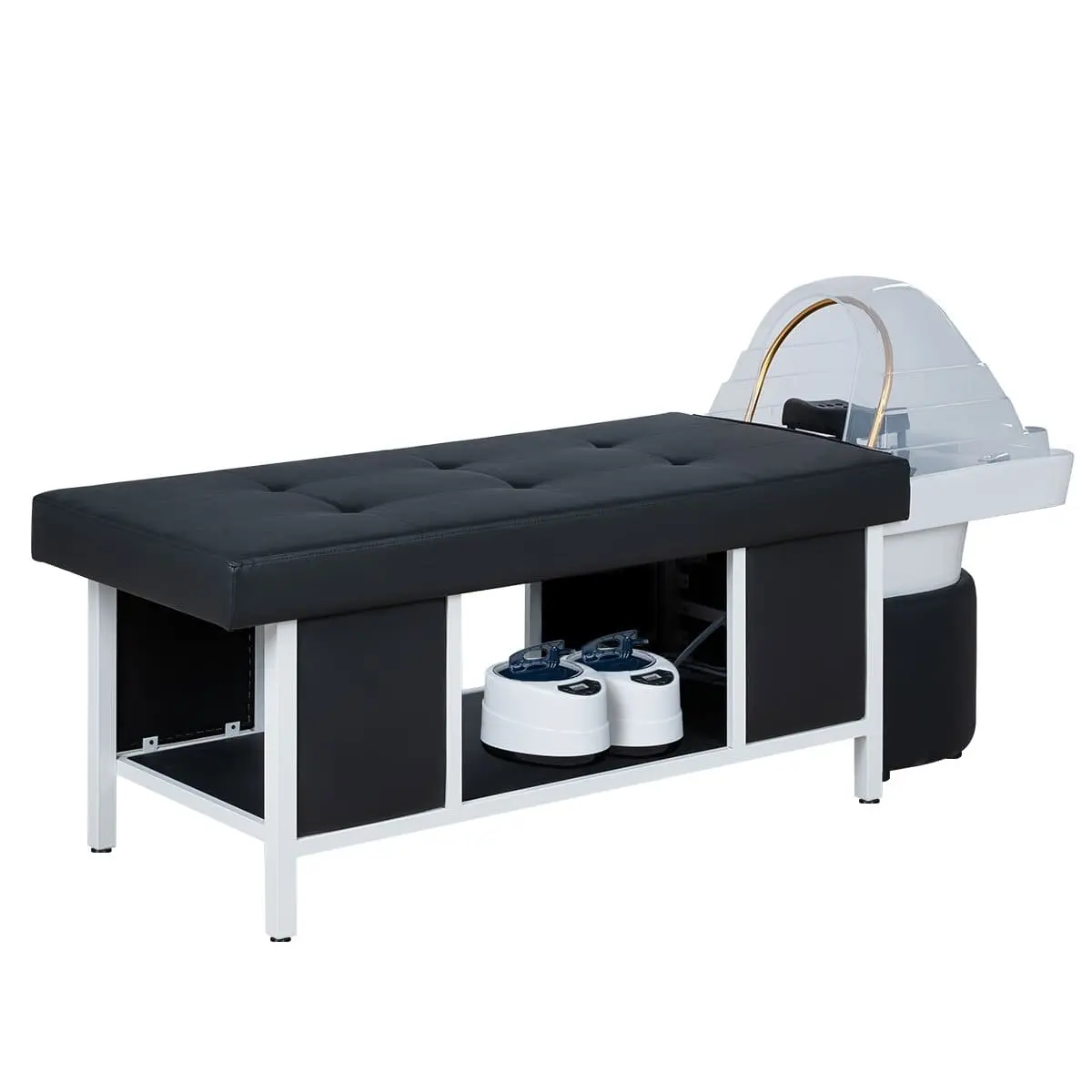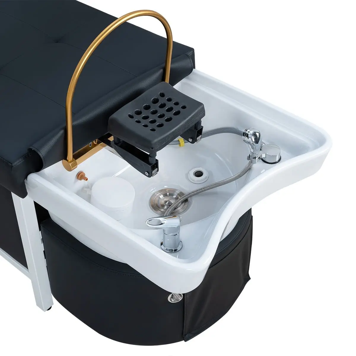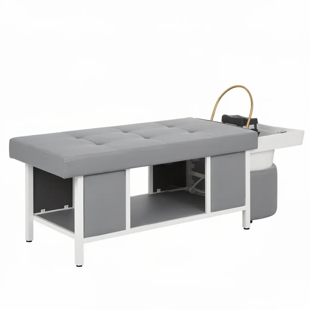 Наоми — спа-кушетка для процедуры head spa, которая превращает обычный уход за волосами в настоящее SPA-путешествие. Продуманная эргономика обеспечивает максимальный комфорт во время процедур, а мягкое ложе поддерживает тело клиента, позволяя полностью расслабиться. Аква-дуга равномерно распределяет потоки воды, создавая эффект глубокого массажа кожи головы и усиливая действие косметических средств.