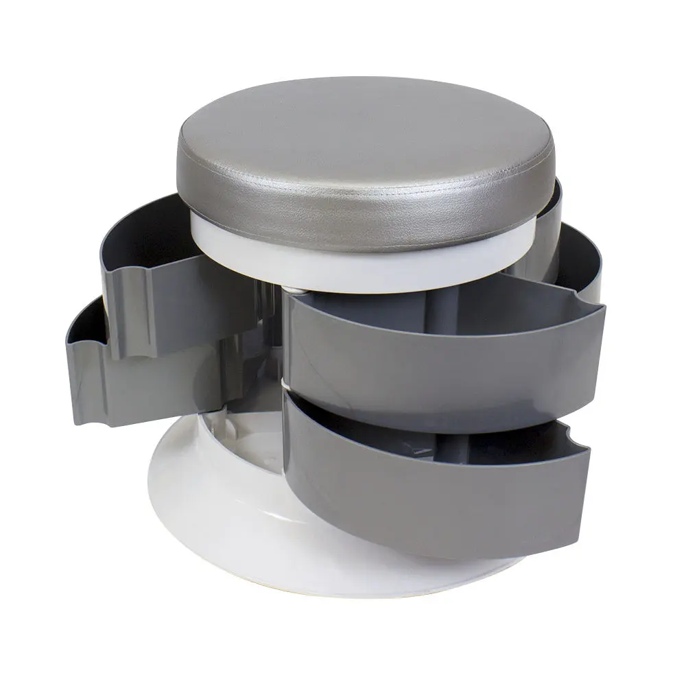 Пуфик без спинки GiroCo Sergio предотвратит усталость мастеров, повысив тем самым эффективность и качество предоставляемых услуг. Наличие ящиков позволит экономить время на поисках нужных приспособлений.